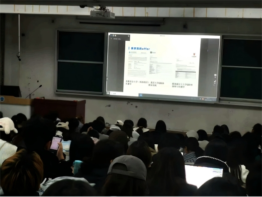 分享过程中,姚元结合自身成功的申请经历,系统梳理从大一大二起应如何规划学业、准备语言考试、参与专业竞赛与实习等重要环节。她重点强调“早规划、早准备”的实际意义,并对选校定位、文书撰写、网申流程及面试准备等关键步骤进行逐步讲解。文书撰写环节,她强调要跳出模板化框架,以个人实习故事、项目经历为切入点,凸显对传媒领域的思考与热情。互动环节中,同学们积极提问,姚元就不同国家申请的特点等问题作出细致解答。