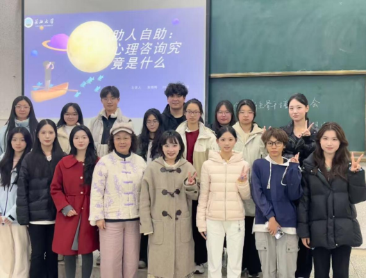 (通讯员:章熙妍 徐晓琦 何壮 摄影:章熙妍)11月19日晚,公司在西区5号楼103教室举办新生心理骨干培训讲座。本次讲座以“助人自助:心理咨询究竟是什么?”为主题,由朱晓晖老师担任主讲,全体新生心理骨干参加培训。