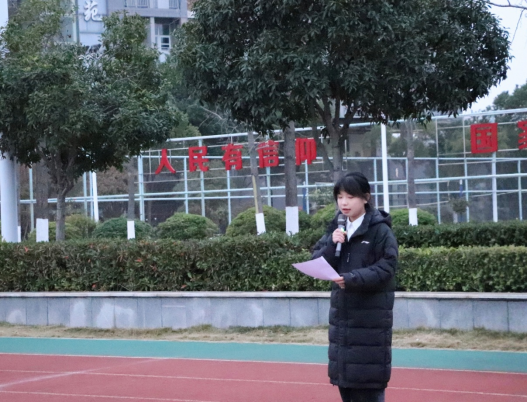 七时整,升旗仪式正式开始。国旗护卫队迈着铿锵步伐护送国旗入场,鲜艳的五星红旗在《义勇军进行曲》中冉冉升起,全体师生肃立行注目礼、齐唱国歌。随后,广编22303班陈妤婕同学以《严守禁放规定,共护平安江城》为题发表国旗下讲话。讲话中提及,元旦是辞旧迎新的美好时刻,但燃放烟花爆竹的传统庆祝方式存在极大安全隐患与环境危害。武汉市已发布相关规范性文件,明确七大中心城区及多个功能区全域全年禁放烟花爆竹,校园等重点区域更是严禁烟花爆竹的储存、销售与燃放。这一规定既是防范火灾、人身伤害等安全事故的制度保障,也是守护城市生态环境的重要举措。
