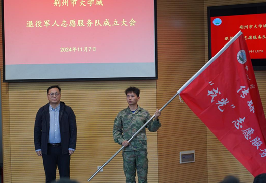 荆州市退役军人事务局党组成员、副局长李荆凤希望退役老员工凭借着过硬的军事素质、敏锐的反应能力和高度的责任感,成为校园安全的守护者,通过组织各种形式的活动,激发同学们的爱国热情,增强同学们的国防意识。
