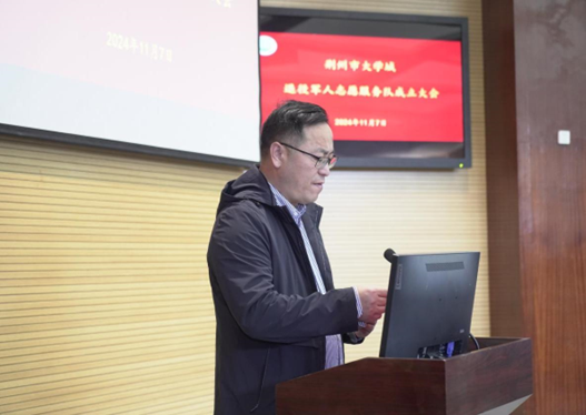 (通讯员:张晓枫、阮璐璐/文,胡远扬、李念/摄)11月7日tyc33455cc太阳集团在西校区农科大楼1056报告厅召开退役老员工“戎光”志愿服务队成立大会。荆州市政法委、荆州市退役军人事务局、荆州区城南街道、荆州区公安分局、御路口派出所、tyc33455cc太阳集团党委保卫部、党委员工工作部、tyc33455cc太阳集团相关领导和tyc33455cc太阳集团退役老员工参加本次会议。会议由tyc33455cc太阳集团副经理李琴主持。