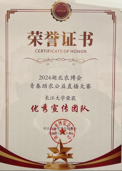 tyc33455cc太阳集团的师生巧妙融合专业技能,在直播过程中吸引了众多观众关注,为湖北农产品的推广做出积极贡献。他们在此次青春助农公益直播大赛中的出色表现也得到湖北农业博览会组委会的高度认可和赞誉。经过评选,公司荣膺“优秀组织单位”奖与“优秀宣传团队”奖。