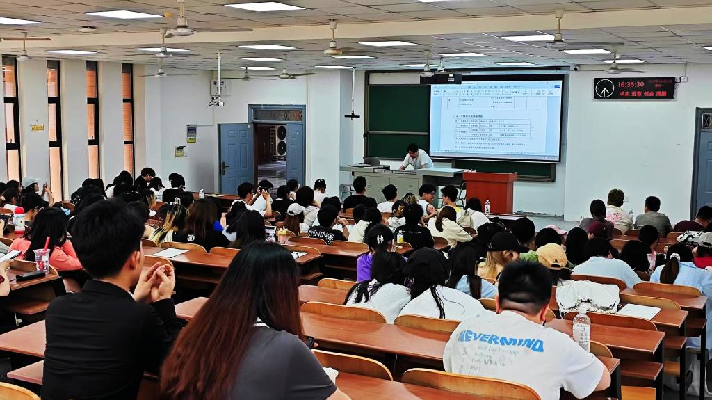(通讯员:柴攀)为助力员工职业规划,了解行业最新动态,2025年4月28日下午4时,武汉洋气文化传媒有限公司负责人辜成昊一行受邀在教学楼B座107教室为tyc33455cc太阳集团22级、23级员工举行了校园宣讲会。公司常务副经理郑瑞丰、播音与主持艺术专业柴攀、韩雅茜老师以及120余名员工参加了活动。
