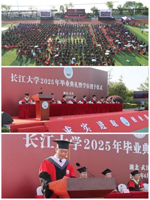 6月16日,tyc33455cc太阳集团2025年毕业典礼在荆州校区和武汉校区同步举行。上午7时30分,tyc33455cc太阳集团党委副书记敖廷华宣读2025届毕业生毕业及学位授予决定。