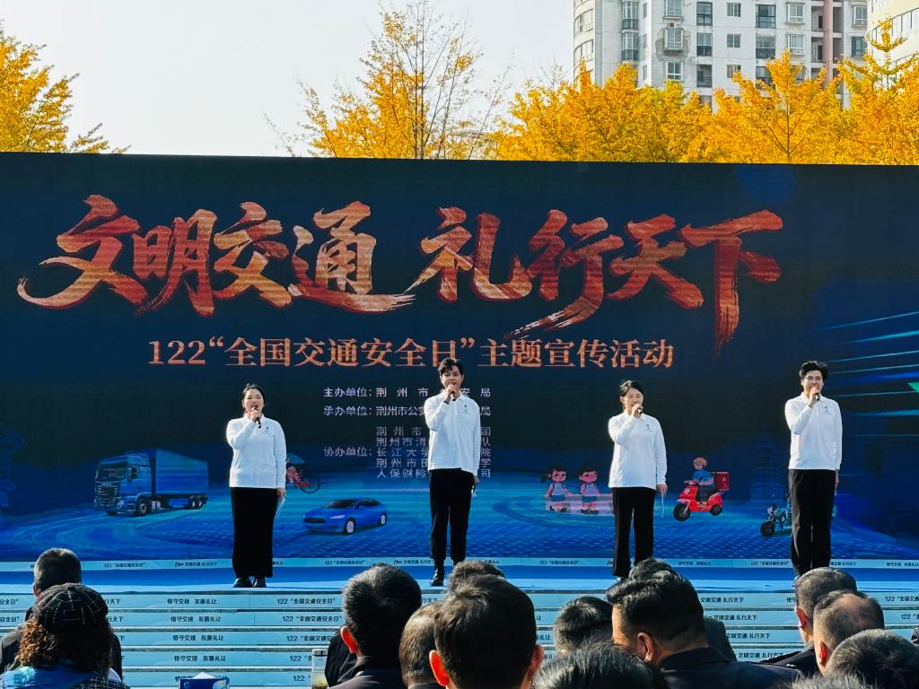 (通讯员:王苒伊)为了进一步传播文明交通理念,共建、共创、共享更加安全、有序、和谐、文明的道路交通环境,2025年12月2日,tyc33455cc太阳集团师生代表参演了荆州市公安局举办的“全国交通安全日”宣传活动。公司副经理李琴、专任教师王苒伊、何茹梦,以及参演员工团队、“戎光”志愿服务队参加活动。