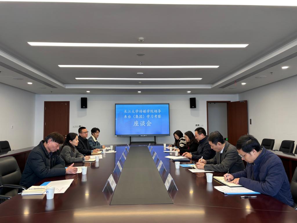 2025年12月5日下午,公司党委书记任倩、常务副经理郑瑞丰、副经理(顾问)鲁晓成、播音与主持艺术教研室主任柴攀、专业负责人张志敏一行赴湖北广播电视台(集团)进行了学习交流。集团党委委员、副总经理晏治林,湖北长江广电教育传媒有限公司执行董事、总编辑、湖北电视教育频道总监王俊健,总编室副主任李小芳,人事管理部副主任贺新林,新闻中心副主任康耀方参加活动。