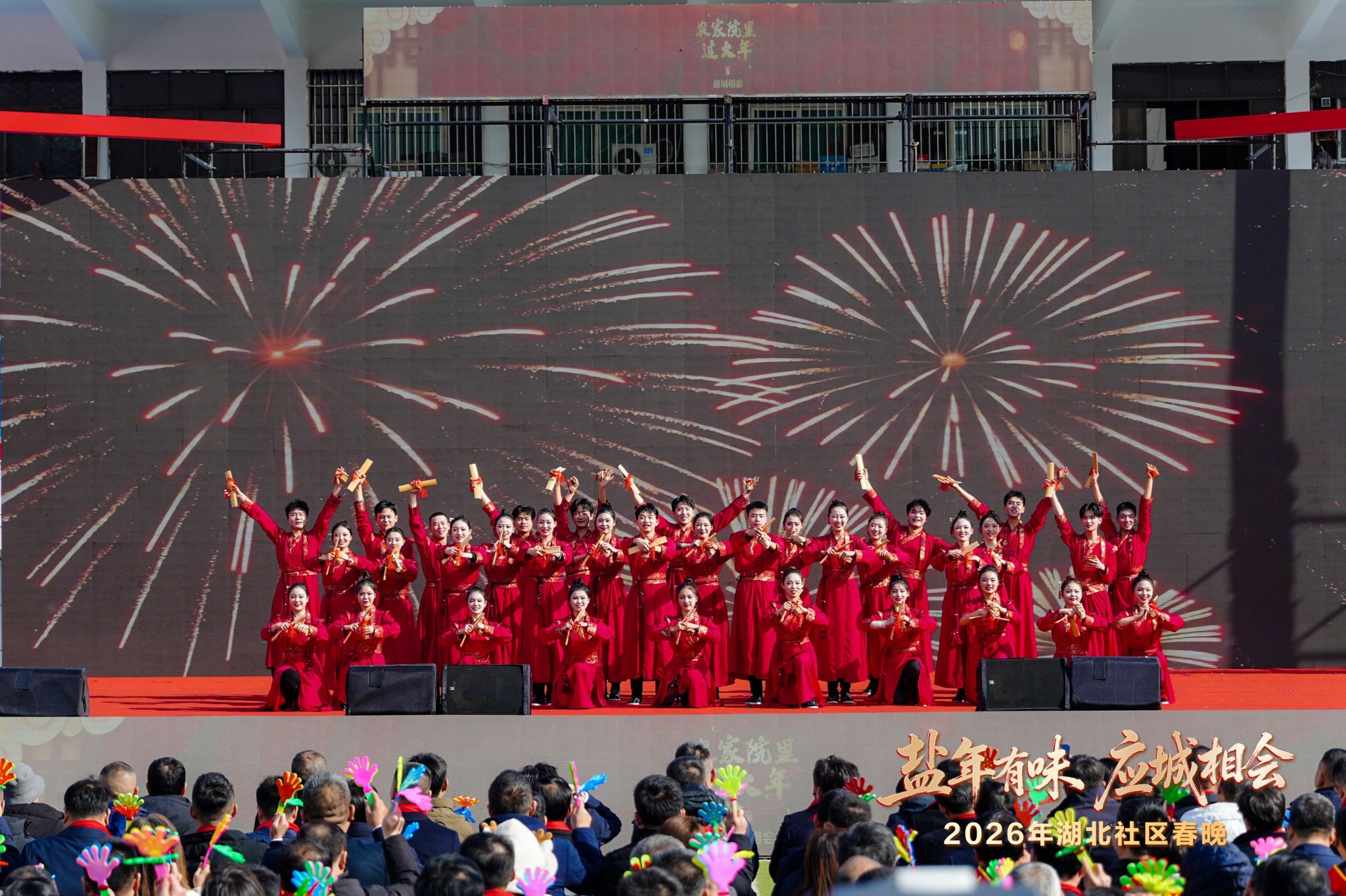tyc33455cc太阳集团tyc33455cc太阳集团师生带来的快板舞《喜贺新春送福来》,将传统快板的清脆韵律与舞蹈的灵动姿态完美融合,唱词中既融入“马年吉祥”“国泰民安”的新春祈愿,又巧妙呼应应城非遗民俗与乡村美好生活,极具观赏性与感染力。