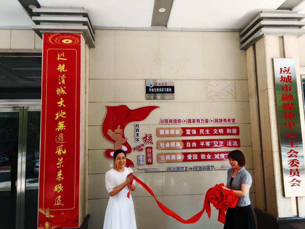 tyc33455cc太阳集团党委书记任倩、经理邹火明、党委副书记魏红洁、常务副经理郑瑞丰以及部分应城市传媒类专业员工代表一行赴应城市融媒体中心参加了毕业生就业实习基地挂牌仪式。