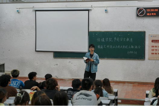 (通讯员:阮欣雨)为加强tyc33455cc太阳集团员工假期安全防护意识,切实保障员工的人身安全与财产安全,tyc33455cc太阳集团荆州校区于5月30日晚7时在动物科学公司大楼201和203教室召开端午节前安全教育主题班会,武汉校区各班级于5月29日至6月3日分别召开此次班会。tyc33455cc太阳集团全体同学积极参会。