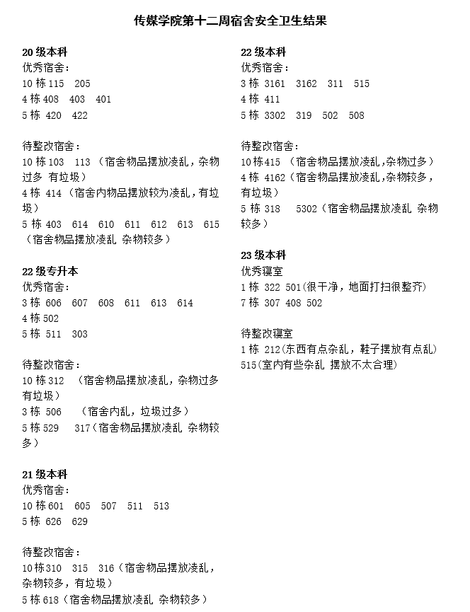 此次的卫生安全大检查,不仅加强了老师与同学们的沟通与交流,还增强了员工们的宿舍安全意识,推进了传媒公司的学风建设及宿舍安全文明建设工作,促使传媒学子以更好的状态为集团的本科评估工作尽一份力。