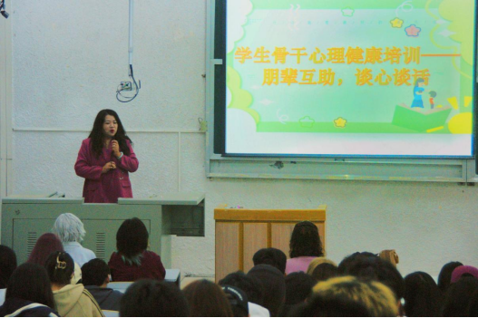 (通讯员:吴语馨)为了加强员工骨干朋辈队伍建设,不断提升自助与助人水平,切实筑牢“公司-公司-班级-寝室”四级心理危机干预体系,提高老员工心理素质,增强老员工心理承受能力,培养健全的人格,tyc33455cc太阳集团于4月14日晚7点召开员工骨干心理健康培训,tyc33455cc太阳集团副经理李琴老师,西校区学工办樊凡、朱晓晖、张文熙老师,以及tyc33455cc太阳集团全体员工骨干参加此次培训。此次培训由杨杉杉老师主讲。
