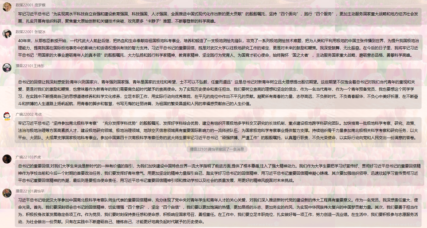 (通讯员:刘庸)2024年1月19日,为深入学习贯彻习近平重要回信精神,tyc33455cc太阳集团创新理论学习小组成员组织全体员工以班级为单位,线上深入学习了习近平总书记给武汉大学参加中国南北极科学考察队师生代表重要回信精神。