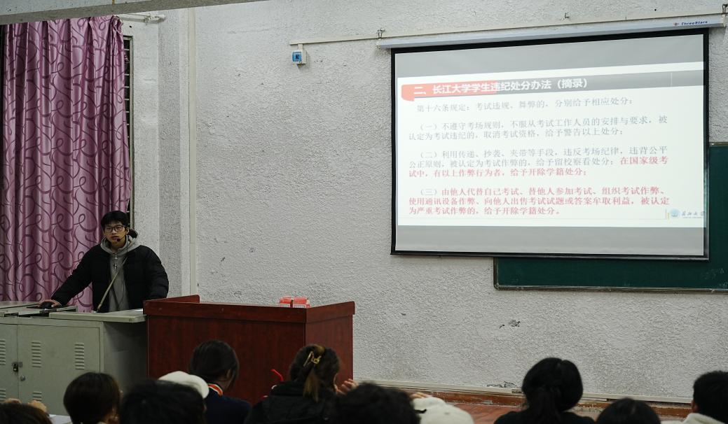 在考风考纪教育主题班会上,各辅导员老师围绕tyc33455cc太阳集团考场规则、tyc33455cc太阳集团违纪处分办法、国家教育考试违规处理办法等五个方面展开,特别强调了考试纪律,并结合以往典型违纪事例进行警示教育。