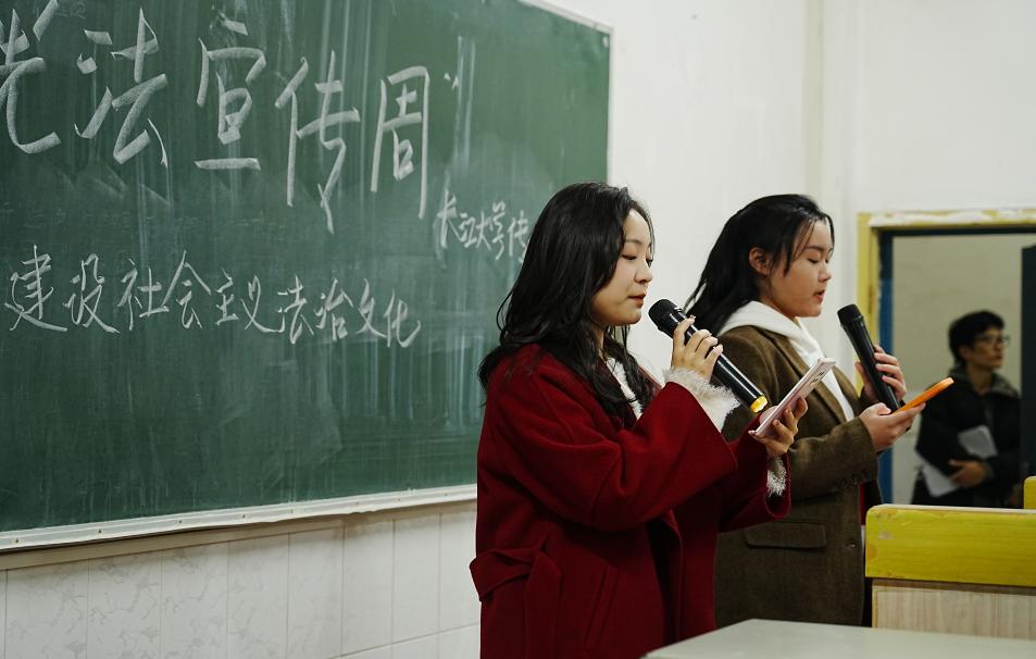 活动预热,12月3日晚于西校区五教101、102教室开展《宪法伴我们成长》歌曲传唱活动,唱宪法之声,扬法治之光。由广编专业的同学领唱,同学们精神抖擞,兴致昂扬的进行歌曲传唱,为12月4日的宪法日活动预热。