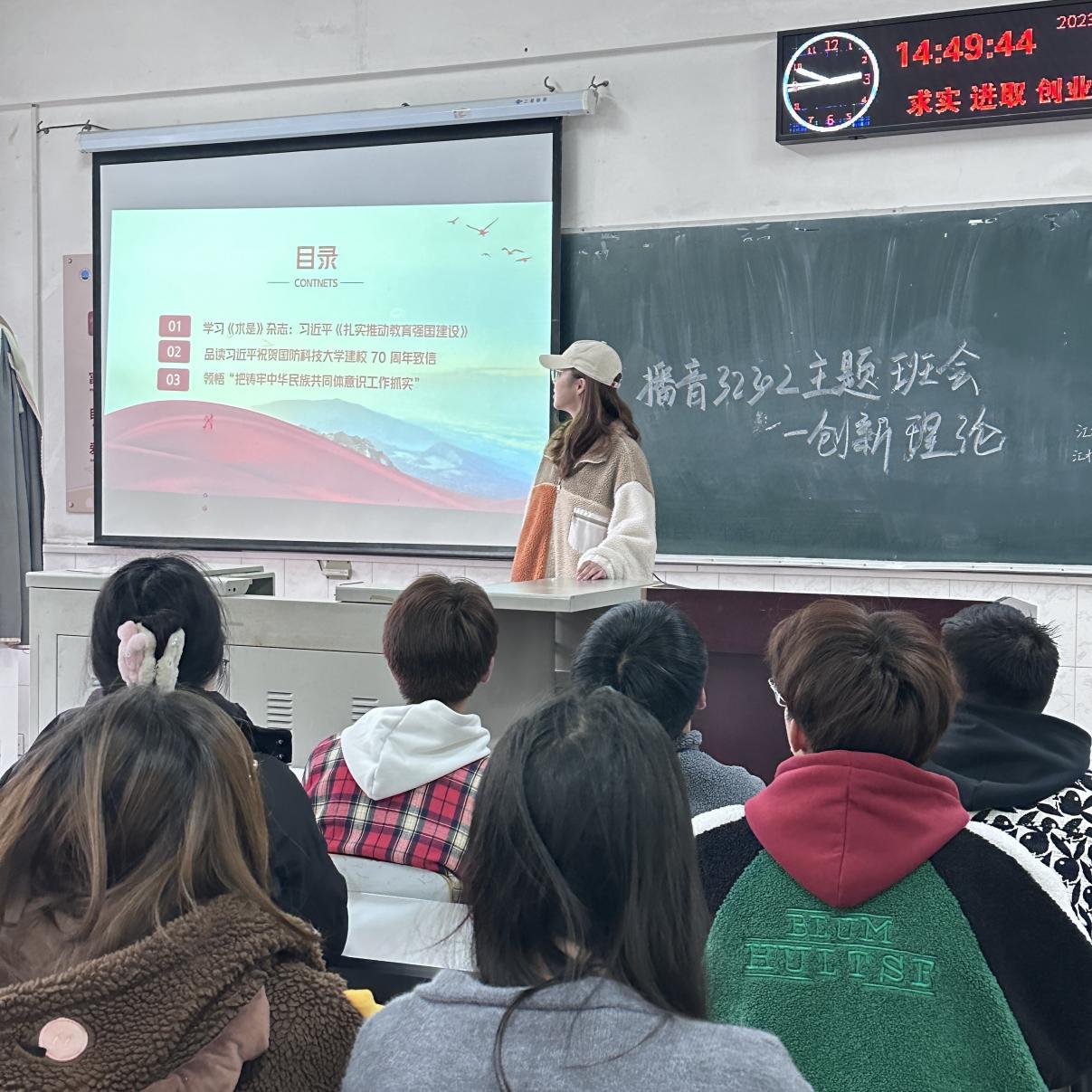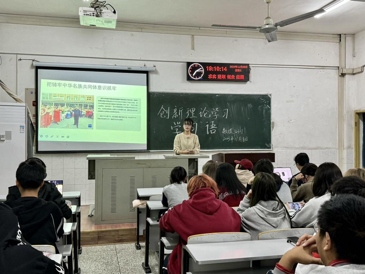 首先,全院师生共同学习了《习近平总书记论青少年成长(第五辑)》、《求是》杂志:习近平《扎实推动教育强国建设》、习近平致信祝贺国防科技大学建校70周年、学习语:把铸牢中华民族共同体意识工作抓实等相关内容。其次,学习了国防教育宣传片、并邀请少数民族同学分享民族特色文化习俗、欣赏《万华镜》献礼中华五十六个民族视频。学习贯彻了党的十八大以来习近平总书记关于高等教育改革发展稳定一系列重要指示批示、考察高校重要讲话、给师生重要致信回信精神。贯通学习了“四史”和新时代伟大成就,传承和弘扬中华优秀传统文化。最后,各班级团支书在此次主题班会中引导全体员工展开了集体学习讨论并请员工代表发言。团支书总结班会并上传了学习材料。