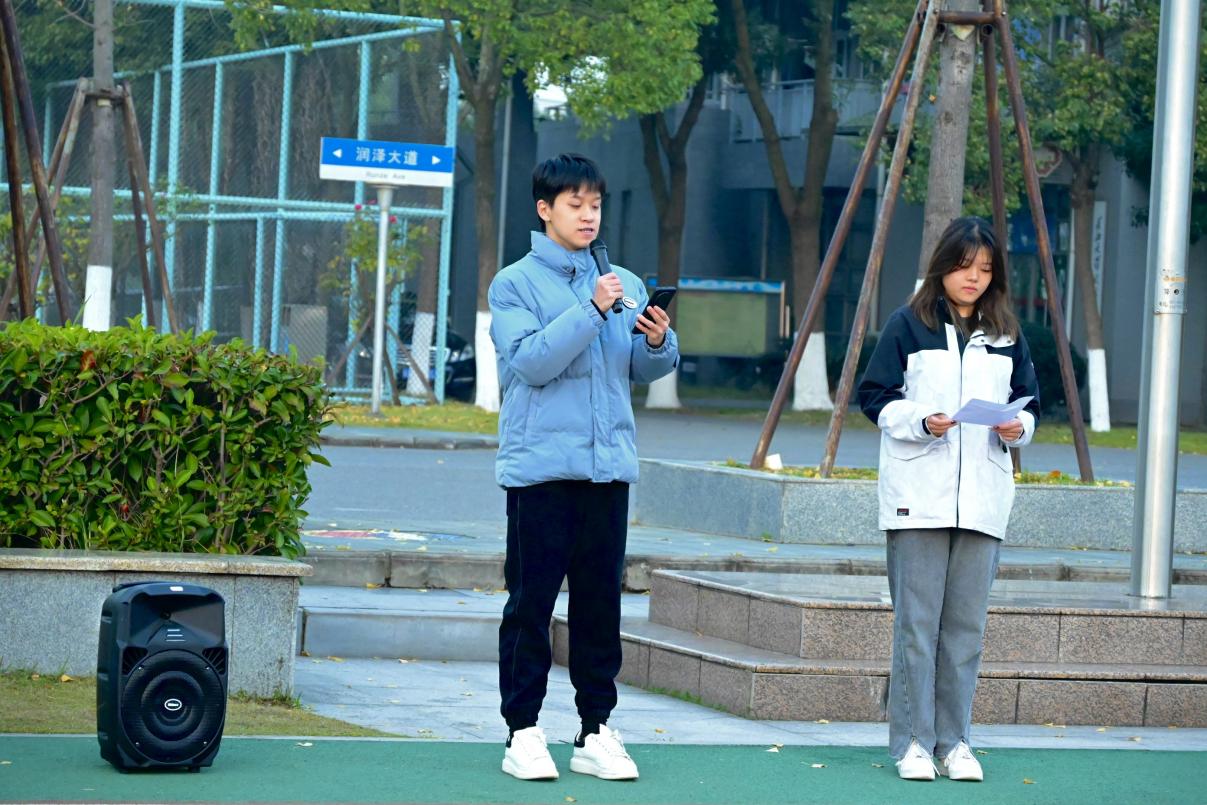 随后,播音22201班的汪锦灿同学进行以“争做时代好青年”为主题的国旗下讲话。在汪锦灿同学的演讲中,她以史为例,提出青年学子为国不懈奋斗的重要原因与意义,并呼吁我辈青年矢志不移,牢记历史使命,投身于新时代的建设,以持中华之盛世。