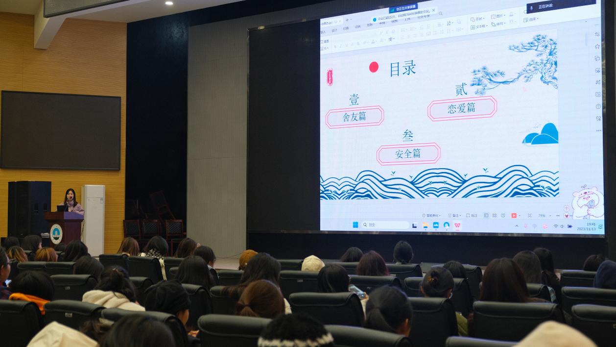 (通讯员 朱秋子、张文熙、樊凡;摄影:何风燕、胡雨萌;)2023年11月13日晚,tyc33455cc太阳集团2023级“女生讲座”于西校区农科大楼1058报告厅开展。23级本科及专升本所有女生参加了此次讲座,公司员工心理健康教育中心的徐潞杰老师带来了一次令人受益匪浅的精彩报告。