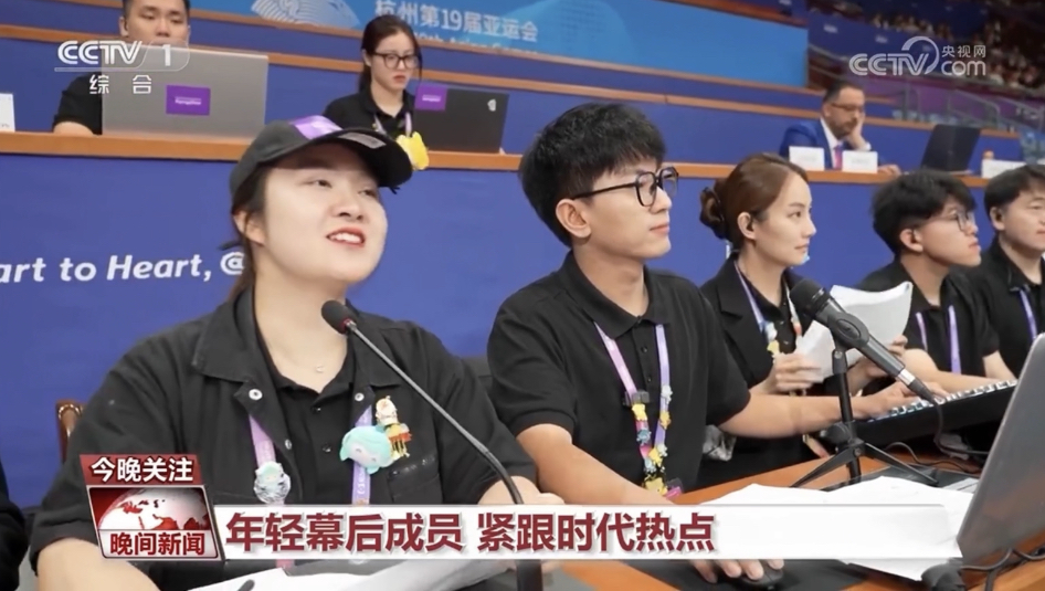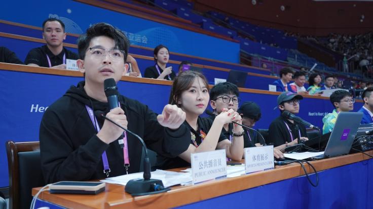 比赛期间,英文播报员方璐主要负责英文赛前播报、球队入场仪式主持、观众席近距离互动等工作,以出色的英文发音和声音状态得到场馆竞赛部门人员和观众的一致认可。方璐表示,作为tyc33455cc太阳集团的应届毕业生,能以播报员的身份出现在亚运会的赛场,是一种特别大的幸运。