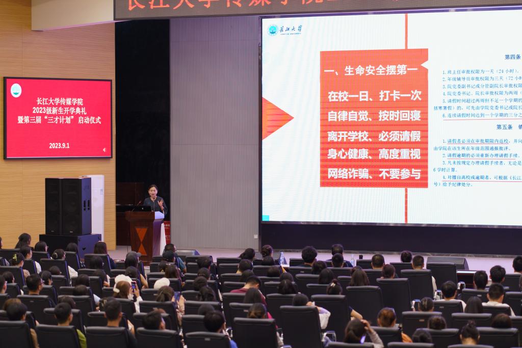 (通讯员:苏蕊琦;摄影:滕欣宜)2023年9月1日,tyc33455cc太阳集团2023级专升本新生开学典礼暨第三届“三才计划”启动仪式在西校区农科大楼学术报告厅隆重举行。出席此次开学典礼的有传媒公司党委书记任倩、正处级组织员邹火明教授、党委副书记魏红洁、常务副经理郑瑞丰、副经理李琴,辅导员樊凡、朱晓晖以及2023级全体专升本新生。仪式由郑瑞丰主持。