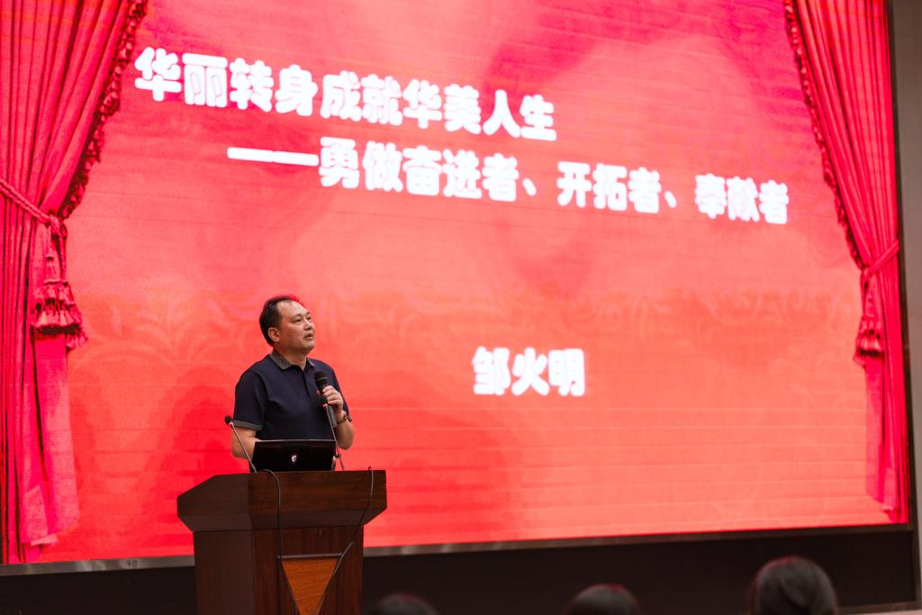 最后,公司正处级组织员邹火明教授寄语新同学“华丽转身成就华美人生—勇做奋进者、开拓者、奉献者”。邹教授分享报告了三个方面,一是从“衡量一个优秀老员工的12条法则”出发,为大家讲解如何做一名优秀的老员工,同时,也从反面告诉大家“如何废掉一名老员工”;二是和大家谈到轴心时代与精神指引,以三纲领:“在明明德、在亲民、在止于善”;八条目:“格物、致知、诚意、正心、修身、齐家、治国、平天下”;勇做走在时代前面;三是从“奋进者、开拓者、奉献者”出发,为大家讲述了成什么人。最后,邹教授希望大家把自己培养成奋进之才、开拓之才和奉献之才,在中华民族实现自己中华梦的伟大蓝图中,写下浓墨重彩的一笔!