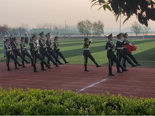 仪式开始,国旗护卫队的护旗手们扛着鲜艳的五星红旗,昂首阔步地朝升旗台走来。国歌奏响的那一瞬,展旗手将国旗向上抛出,在全体师生的注目下,五星红旗冉冉升起,在场师生敬礼仰注,心中一团团热火开始燃烧,为我们伟大祖国的日益繁荣昌盛而自豪。