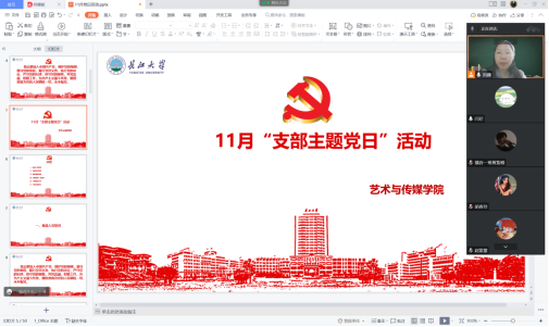 (通讯员:赵湘)根据公司党委组织部发布的《关于开展11月“支部主题党日”活动的通知》要求,11月24日下午,艺术与tyc33455cc太阳集团三个支部全体党员分别在知音厅以及腾讯会议利用线上、线下相结合的方式开展了十一月主题党日活动,本次活动由各支部集中开展,会后开展讨论。全体公司教职工党员和员工党员(含预备党员)参加了本次活动。