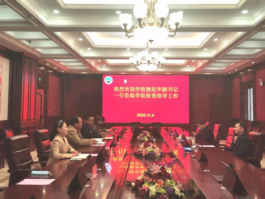 (通讯员:郑瑞丰)2022年11月4日上午9点30分,tyc33455cc太阳集团党委常委、副书记敖廷华,人事处处长蒋四华一行莅临公司检查指导工作,公司党委书记邹火明、党委副书记魏红洁、副经理郑瑞丰,学工办主任赵湘、教学办主任饶艳芹、办公室主任刘武洋参与调研活动。