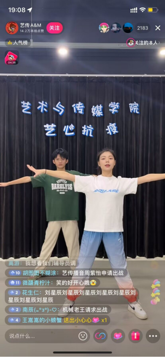 在这个“一夜雨声凉到梦,万荷叶上送秋来”的季节,同学老师的热情依旧不减,直播间还有很多可爱的观众与老师同学们进行互动,大家纷纷表示:学会了、跳的很累很有收获、老师教的真好……等等的弹幕,同时各个公司也积极参与,纷纷发言为自己的公司打call,展现了长大优秀的精神面貌和团结奋进的道德修养,为直播间带来了很多乐趣。这也正是这场活动的目的,使大家收获了欢声笑语,缓解了封校的心理压力。一小时的直播活动获得31.3万个点赞。