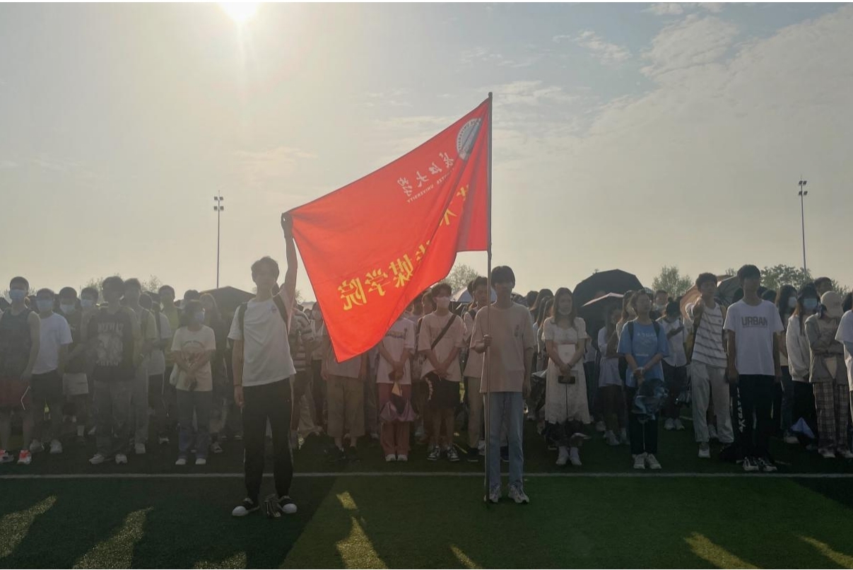 (通讯员:蒙鑫怡)在朝阳笼罩下,知音湖畔,人头攒动。2022年6月6日清晨,在党委副书记魏红洁、学工办主任赵湘、团委书记肖淳、办公室主任刘武洋、辅导员刘庸的带领下,艺术与tyc33455cc太阳集团全体员工举行了第十六周升旗仪式。