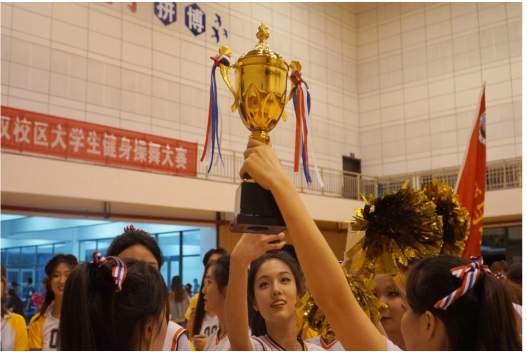 皓月当空,比赛落幕。在无数人的期待下,本次比赛的组织教师袁丹老师公布了本次比赛的最终名次,艺术与tyc33455cc太阳集团不负众望,以19.52的总分取得绝对优势,一举摘得了“啦啦操第一”、“健美操第一”、“团体总分第一”、“最佳编排奖”及“最佳表演奖”五个奖项。
