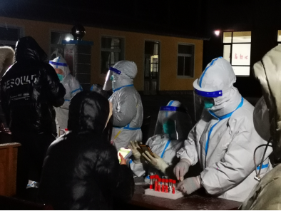 医护人员手中的试管就像琴键一个个精准的放在了格子中,我真的喊累了,坐在离检测点很近的大理石石墩上让快要做核酸的提前出示好身份证和健康码。他们的嗓子也哑了,额前的防护面罩上蒙了一层汗已经冻上了,就维持一个动作不停的一个接着一个。离我最近的检测点暂停了工作,那个穿防护服的医护姐姐悄悄问我厕所怎么走,我给她指了路并帮她脱掉防护服。她说自己穿了两条棉裤但脱防护服的时候腿还是抽筋了,她说实在忍不住了才不得不脱掉防护服,我说我理解因为我成为大白后也已经五六个小时没喝水了,因为怕浪费防疫物资。我从未想过这也是我的经历。临时搭建起的检测点中间有三盏吊着点简易白炽灯,医护人员在影子中工作着,我站在人群中释怀了,谁说站在光里的才算是英雄。疫情当下的至暗时刻,我们每个防疫人员都是逆光的英雄。
