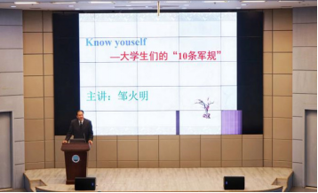 最后,公司党委书记邹火明教授给新生做了《老员工的十条军规》的主题讲话。他提出“学习需要新方法”;告诫大家“目标明确有规划”;表达了老员工“综合素质要提高”的期盼;鼓励大家“实践能力多锻炼”;要求“坚决不做低头族”;勉励大家“知心朋友不可少”;以“青青苹果慎采摘”告诫同学们要慎重对待老员工恋爱问题;鞭策大家“社交能力要提高”;鼓舞大家“参加培训拿证书”;激励大家“创业兼职长见识”。
