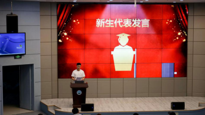 播音z22001班宋雨林是一名退役军人,他代表新生发言,慷慨激扬的语气坚定了他的信心与决心,“书山有路勤为径,学海无涯苦作舟”,他鼓励同学们一同努力学习,为公司交一份满意的答卷。