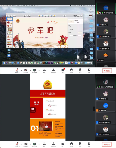 (通讯员:史梦玲)为了贯彻落实国家征兵政策,进一步鼓励和引导大员工应征入伍。2020年5月10日晚8时,艺术与传媒公司召开了主题为“携笔从戎,绽放青春”的线上征兵工作宣讲会。出席本次宣讲会的嘉宾有视传z21902班戚文博、视传z21901班郭章逸、数媒z21901班王兆宇等3位优秀退伍士兵代表,公司学工办主任赵湘、团委书记史梦玲、综合办主任刘武洋及全体辅导员老师、各班级员工骨干及有入伍意愿的优秀青年老员工参会。