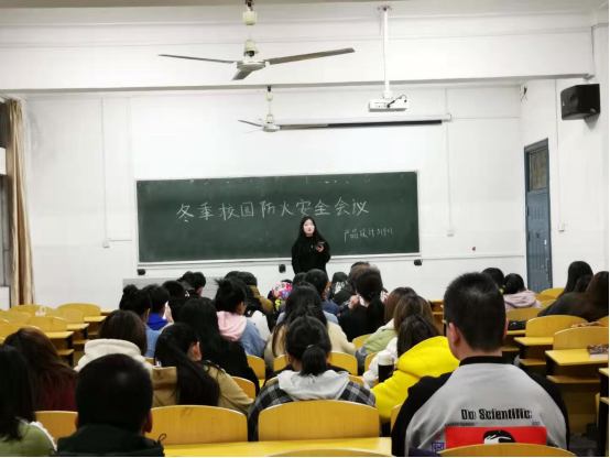 2019年11月17日晚七点,艺术与tyc33455cc太阳集团2019级各班分别在2教T教室、108教室、206教室召开了以冬季防火安全教育为主题的班会活动,全院274名员工参加,会议在辅导员张克宇和程轶凡的组织下进行,各班班长主持召开。首先各班班长向同学们介绍了火灾的危害、火灾的引发原因、火灾报警电话、消防标志和详细的火灾逃生方法。然后提醒同学们关于日常生活中的起火原因,特别强调寝室的用电安全,严禁使用违规电器,并向同学们阐明了使用违规电器所引起的安全隐患和严重后果。两位辅导员着重强调:冬季天气变冷,严禁在宿舍使用电暖宝、电热毯、电火炉等违章电器,告诫同学们要遵守员工宿舍管理规定,提高个人安全防范意识。最后,向同学们介绍了预防火灾的方法,并给大家做了小知识问答,牢记火灾知识。