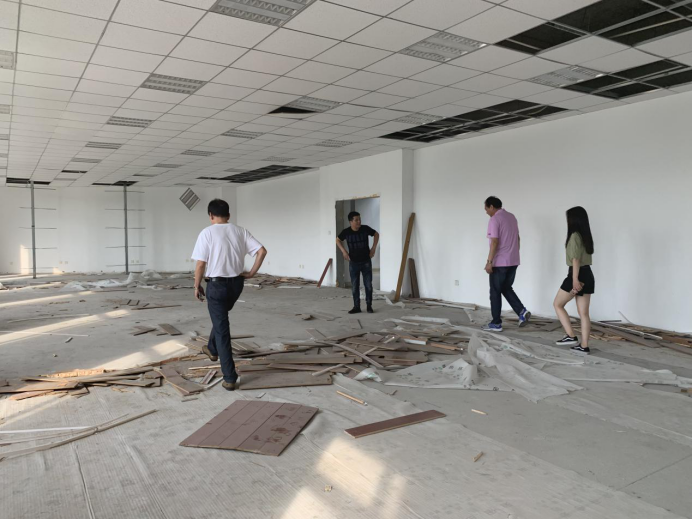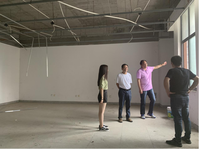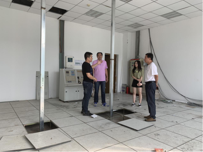 2019年7月22日下午五点,公司党委书记邹火明、常务副经理戴德铸、综合办主任刘武洋、副主任赵湘一行检查公司实训室二期工程建设,强调工程建设要确保安全、质量、进度。