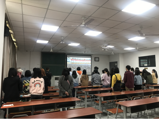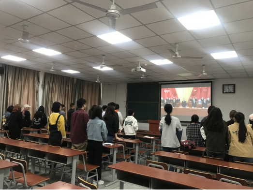 纪念五四运动100周年大会今天上午在北京人民大会堂隆重举行,习近平总书记在大会上发表讲话。艺术与tyc33455cc太阳集团部分老师代表、全体辅导员、员工党员、积极分子和员工骨干成员在武汉校区A教205教室一起观看了视频。