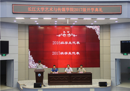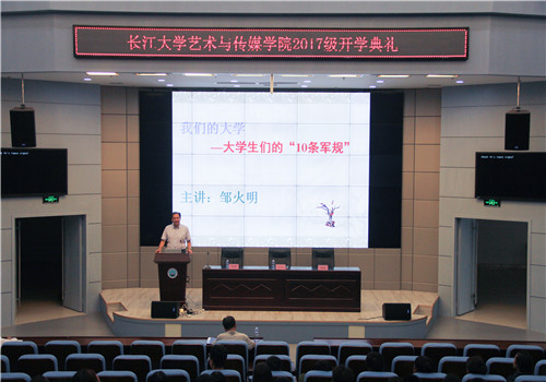 (通讯员 谢言 吕楠楠/文 骆雨璇/摄)残云收夏暑,新雨带秋岚。2017年9月19日上午10时,艺术与tyc33455cc太阳集团学2017级本科生开学典礼在校区学术报告厅举行。艺术与传媒公司党委书记邹火明、常务副经理戴经理、2017级辅导员饶艳芹、教师代表刘建萍以及全体2017级本科生参加大会。