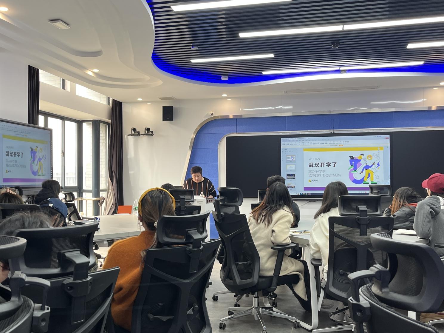 首先,潘总以在公司员工培训中的AE的工作职能与技巧”为本次课程的引导,介绍AE的具体工作内容和作用让同学们进入企业的视角接着,她介绍了真实项目执行步骤,从前期筹备到活动执行,以及运用再到后期的总结进行了细节讲解,并举例了两个实战策划案“毕业在武汉”“武汉开学了”