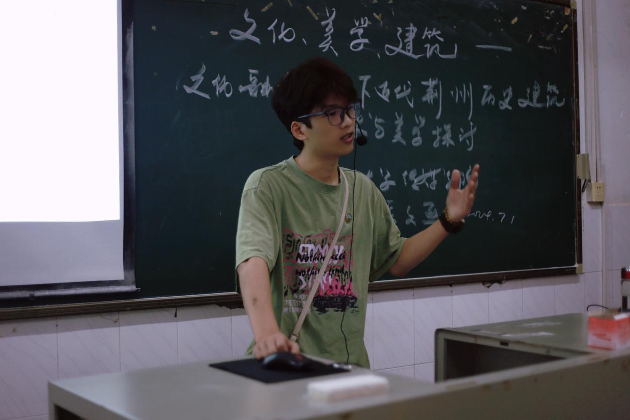 本次讲座分为三个环节,分别是发问、破问、解问三个方面。张文熙老师从研究背景及意义、文化融合与艺术特征解析以及近代荆州历史建筑表现特征和艺术美学探讨三个方面进行了详细的讲解,同学们积极聆听,现场气氛轻松活跃。