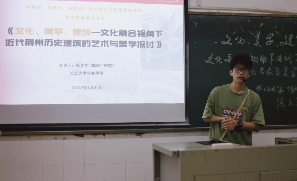 (通讯员:阮欣雨、张文熙;摄影:章浩然)为培养同学们审美观念和学术视角,以讲座形式纪念同学们在荆州学习生活时光。7月1日上午10时,tyc33455cc太阳集团于tyc33455cc太阳集团西校区2号教学楼205教室开展《文化、美学、建筑——文化融合视角下近代荆州历史建筑的艺术与美学探讨》主题讲座。本次活动主持人是李琴副经理,主讲人为张文熙老师。