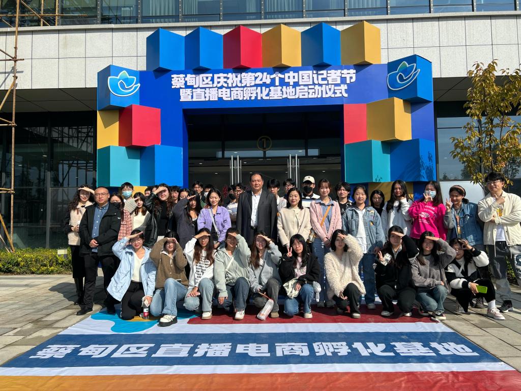 (通讯员:许健)为深入了解传媒行业的前沿动态,增强对媒体融合的感性认识,2023年11月8日记者节到来之际,传媒公司党委书记任倩、正处级组织员邹火明教授、常务副经理郑瑞丰,以及专业教师许健、何佳、苑思琪、吕书春,2020级播音与主持专业和广播电视编导专业230余名师生前往蔡甸区融媒体中心开展学习考察实践活动,并参加蔡甸区融媒体中心庆祝第24个中国记者节暨直播电商孵化基地启动仪式。