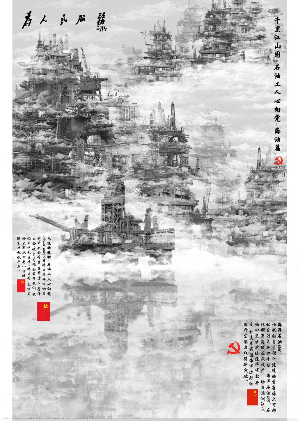 插画作品:《千里江山图 石油工人心向党-海油篇》-郑逸臣