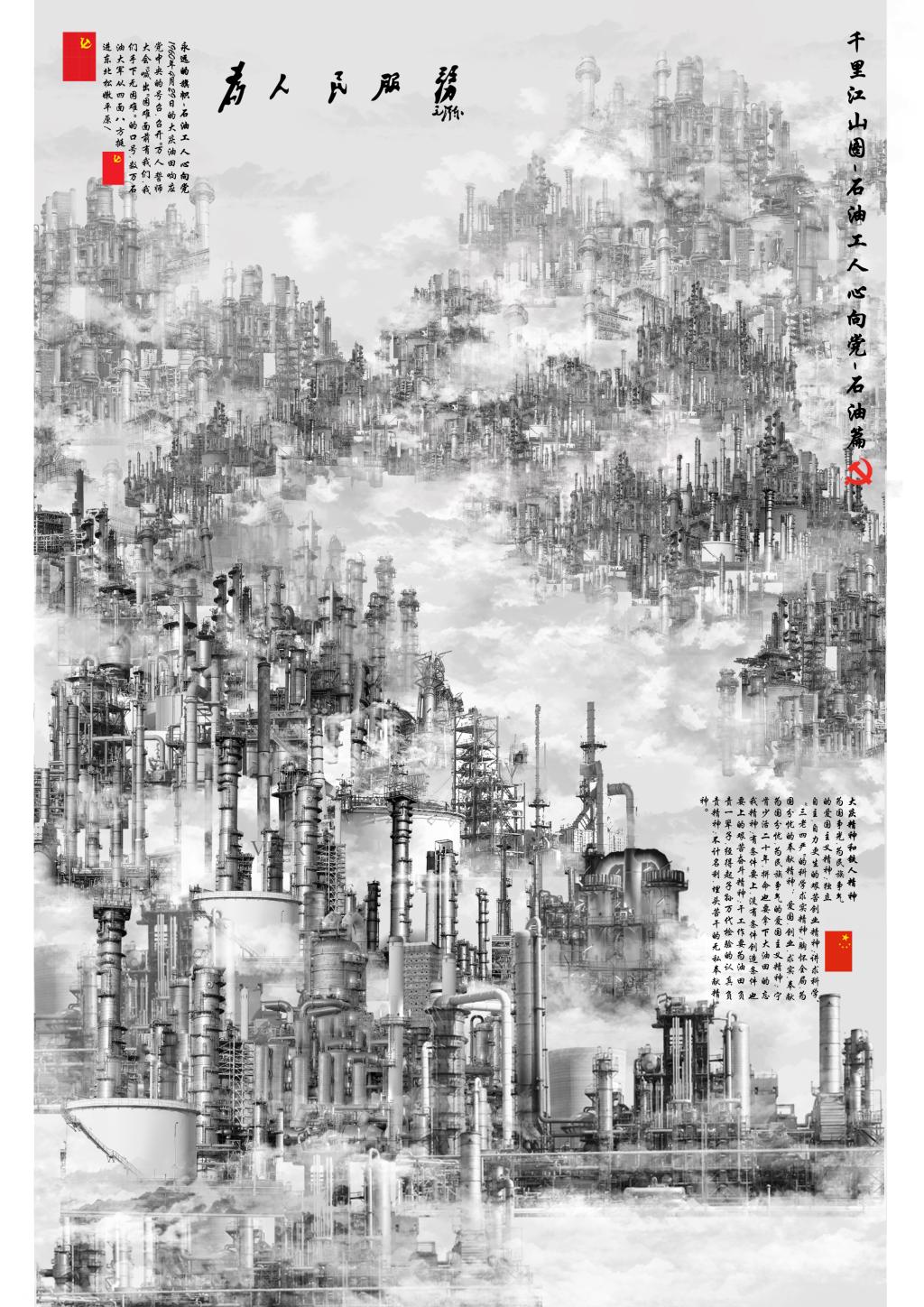 插画作品:《千里江山图 石油工人心向党-石油篇》-郑逸臣